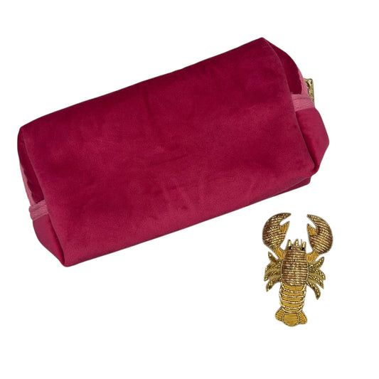 Dark blue makeup bag with Gold Jewelled Insect brooch