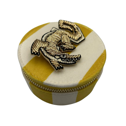 Mustard Barcelona & Copper Tokyo sock box duo with embroidered brooch