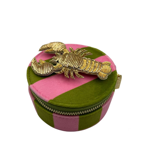 Jewellery Travel Pot in pink stripe - Lobster brooch