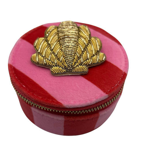 Jewellery Travel Pot in pink stripe - Shell brooch