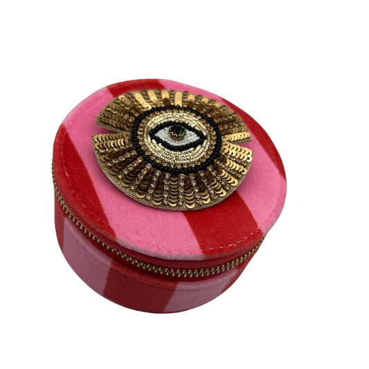 Jewellery Travel Pot in pink stripe - Sunray Eye brooch