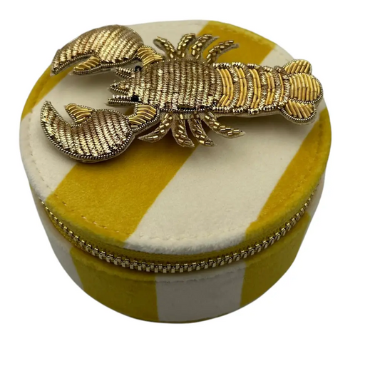 Jewellery Travel Pot in yellow stripe - Lobster brooch