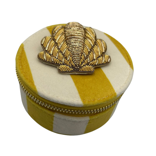 Jewellery Travel Pot in yellow stripe - Shell brooch