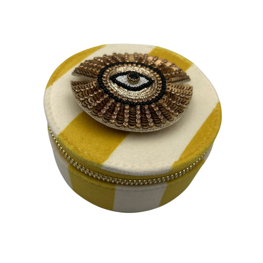 Jewellery Travel Pot in yellow stripe - Sunray Eye brooch