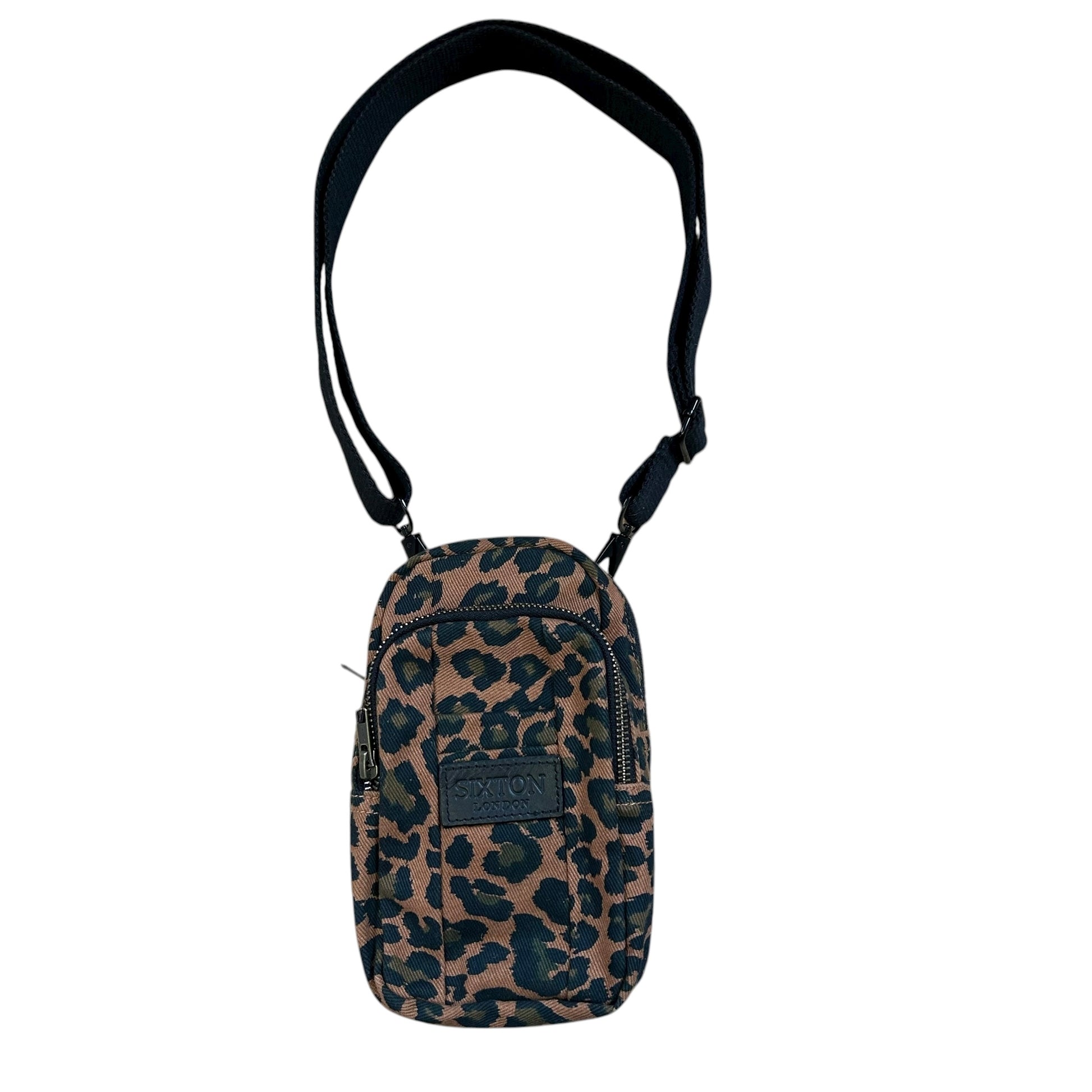 A compact bag for your essentials - in brown leopard print. To be worn over the shoulder or across your body. This bag also has a detachable strap and can be attached to your belt.