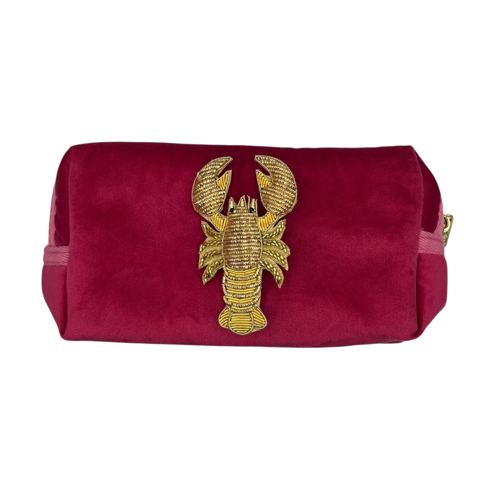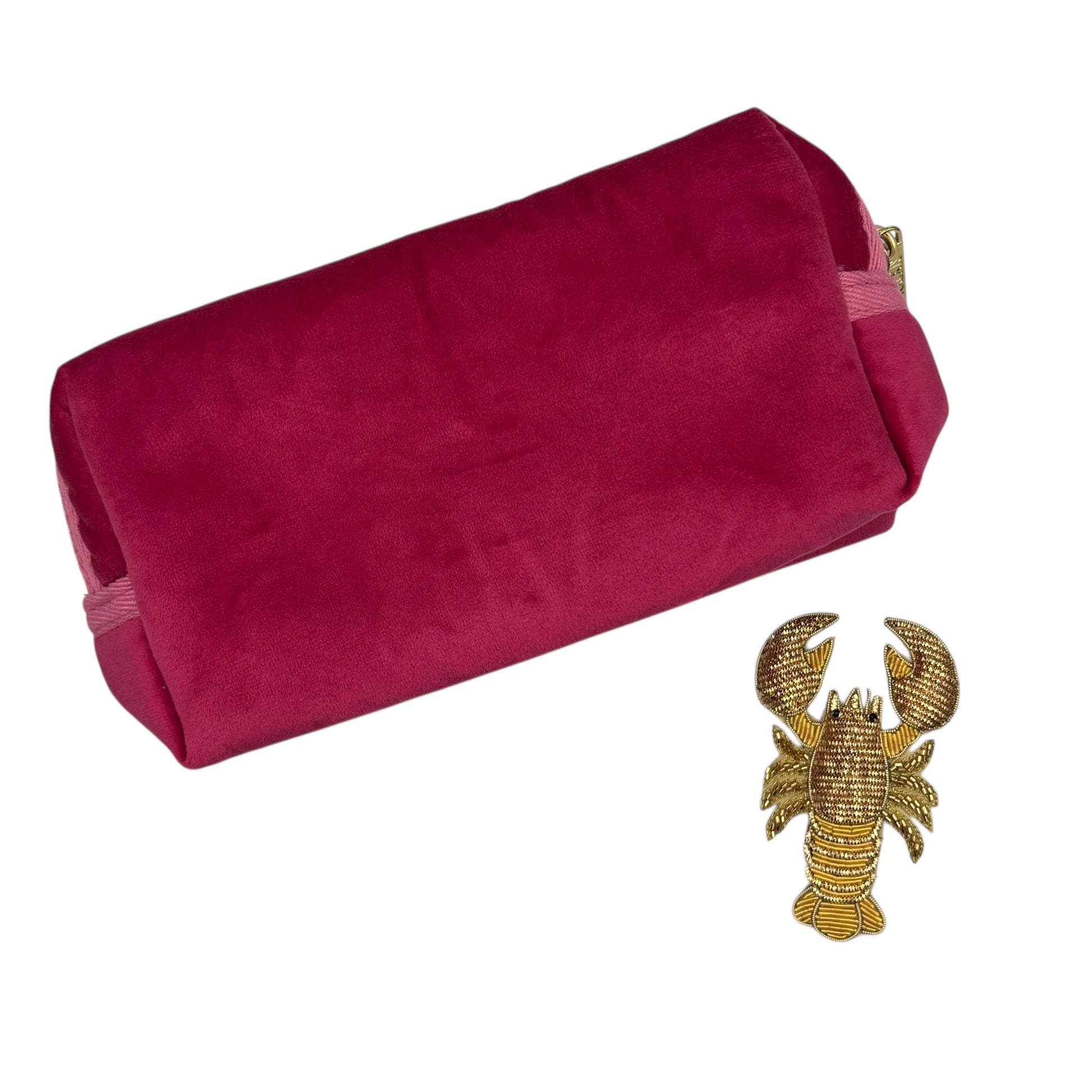 A gorgeous bright pink velvet makeup bag, with a detachable Lobster brooch.