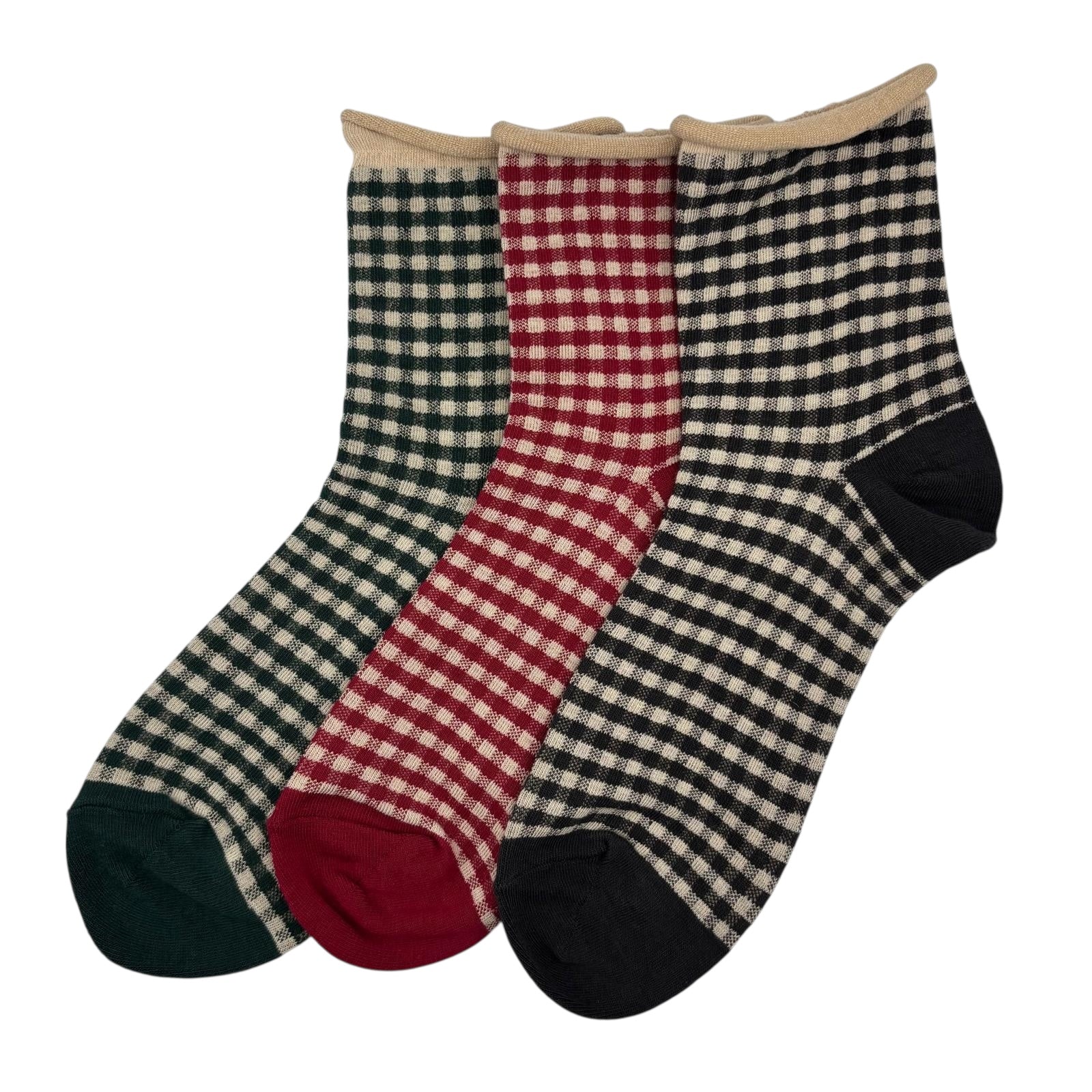 A cute pair of gingham socks, available in three colours.