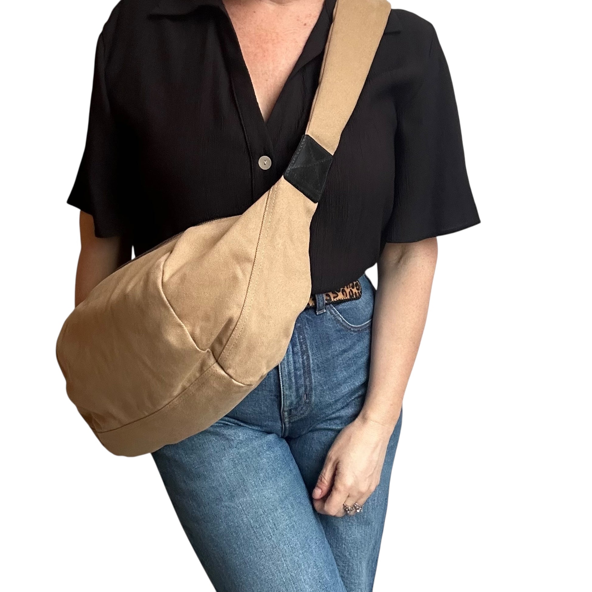 Brixton cross body sling bag - Sand cotton canvas - large