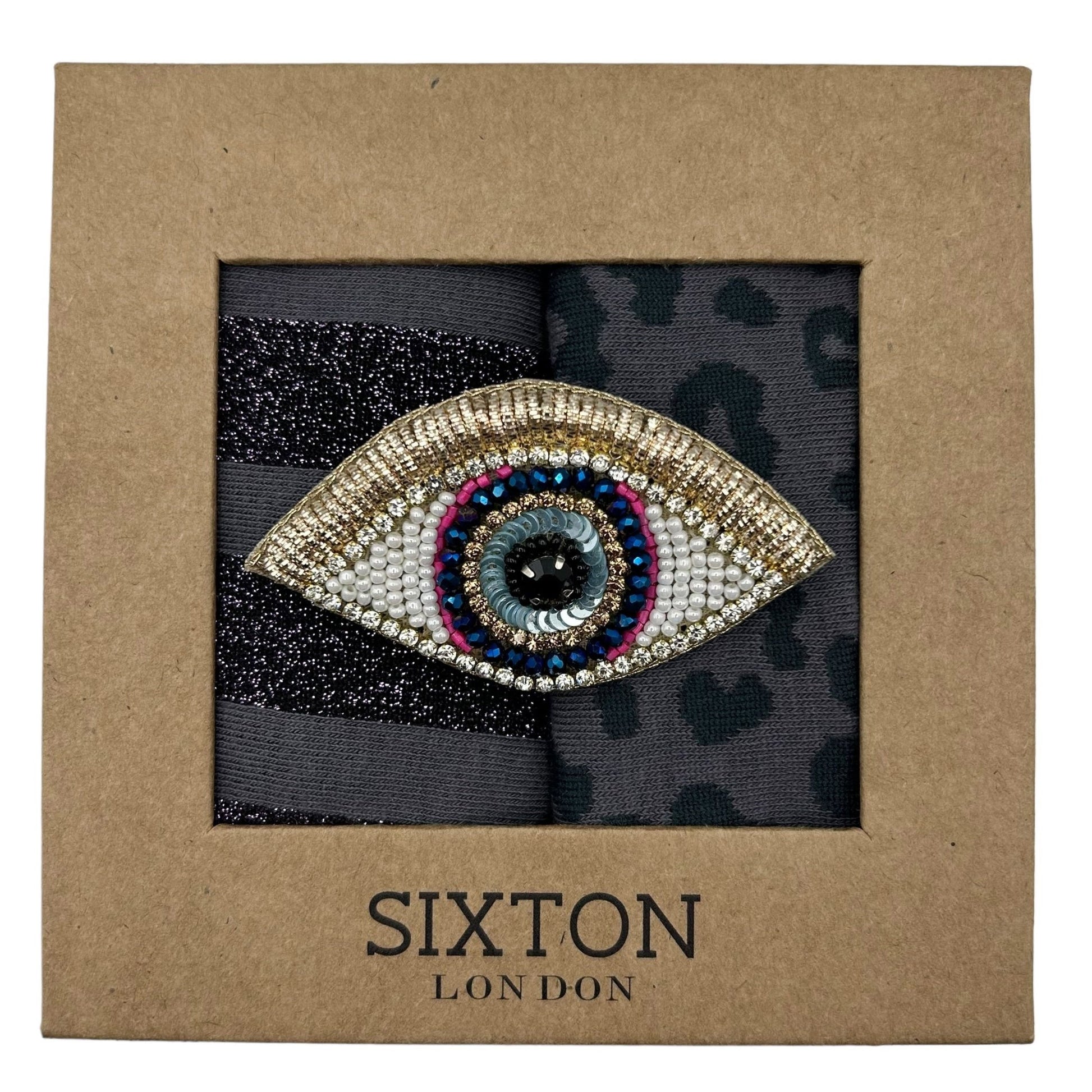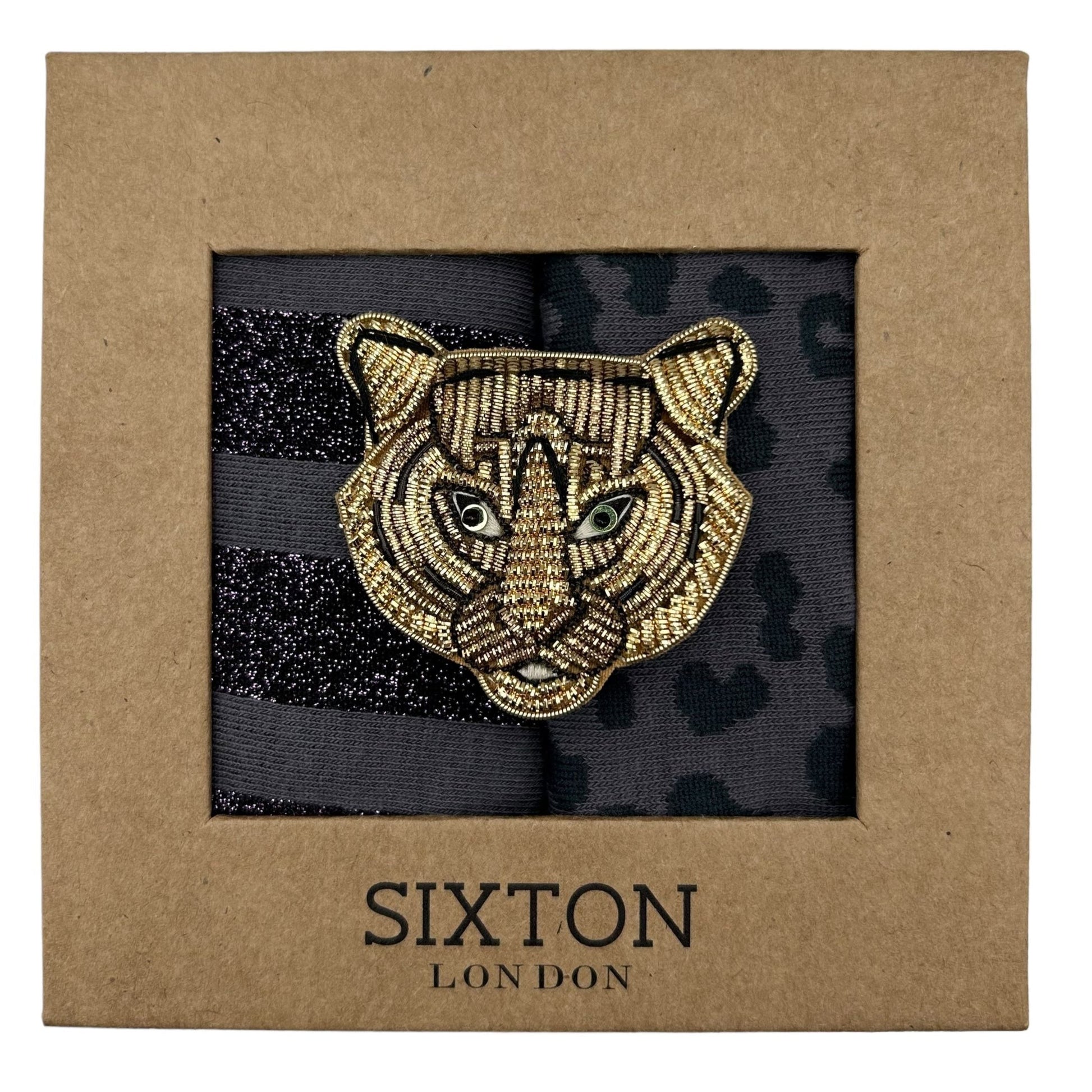 Charcoal Leopard & Purple Berlin sock box duo with pin