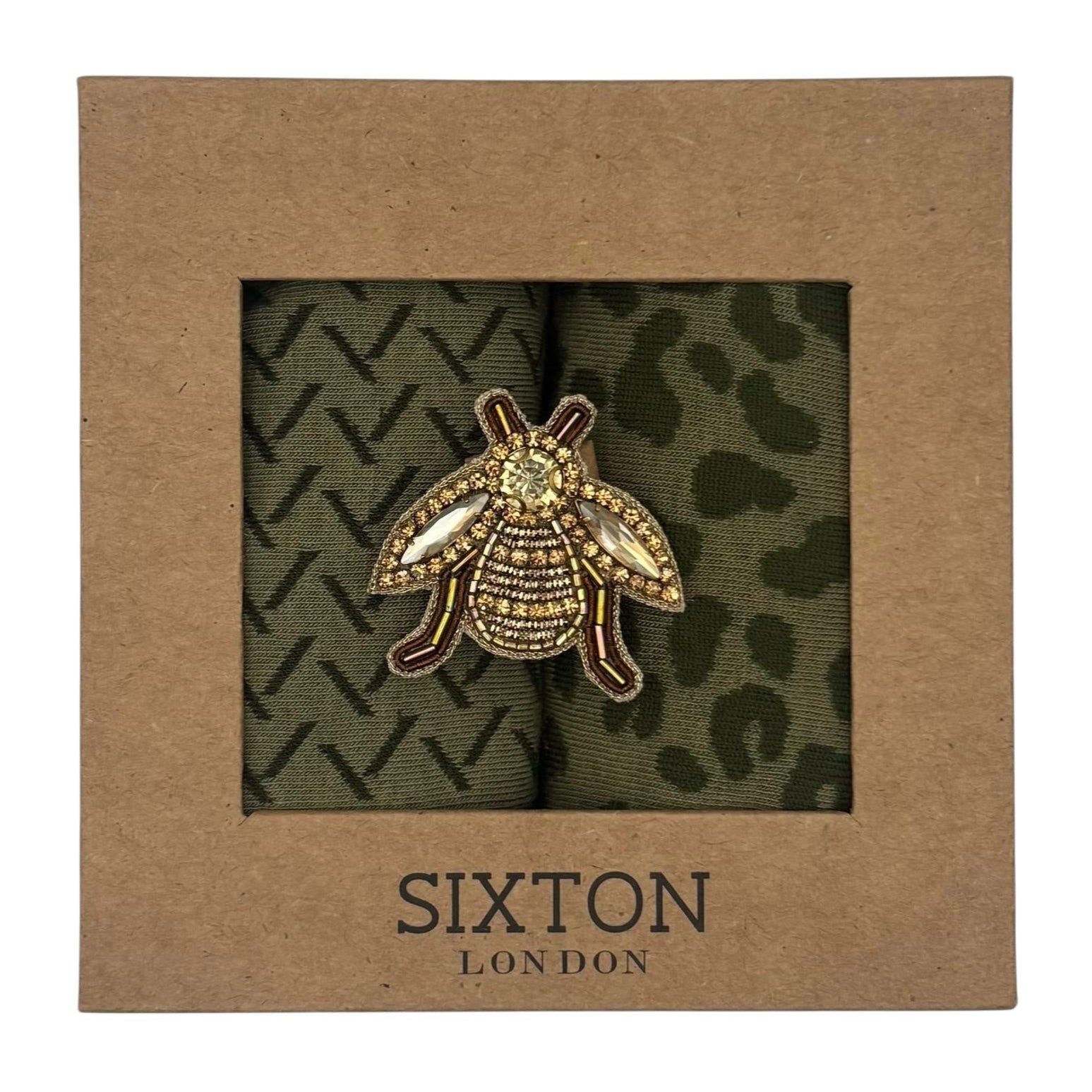 Ivy Kyoto & Leopard sock box duo with embroidered brooch