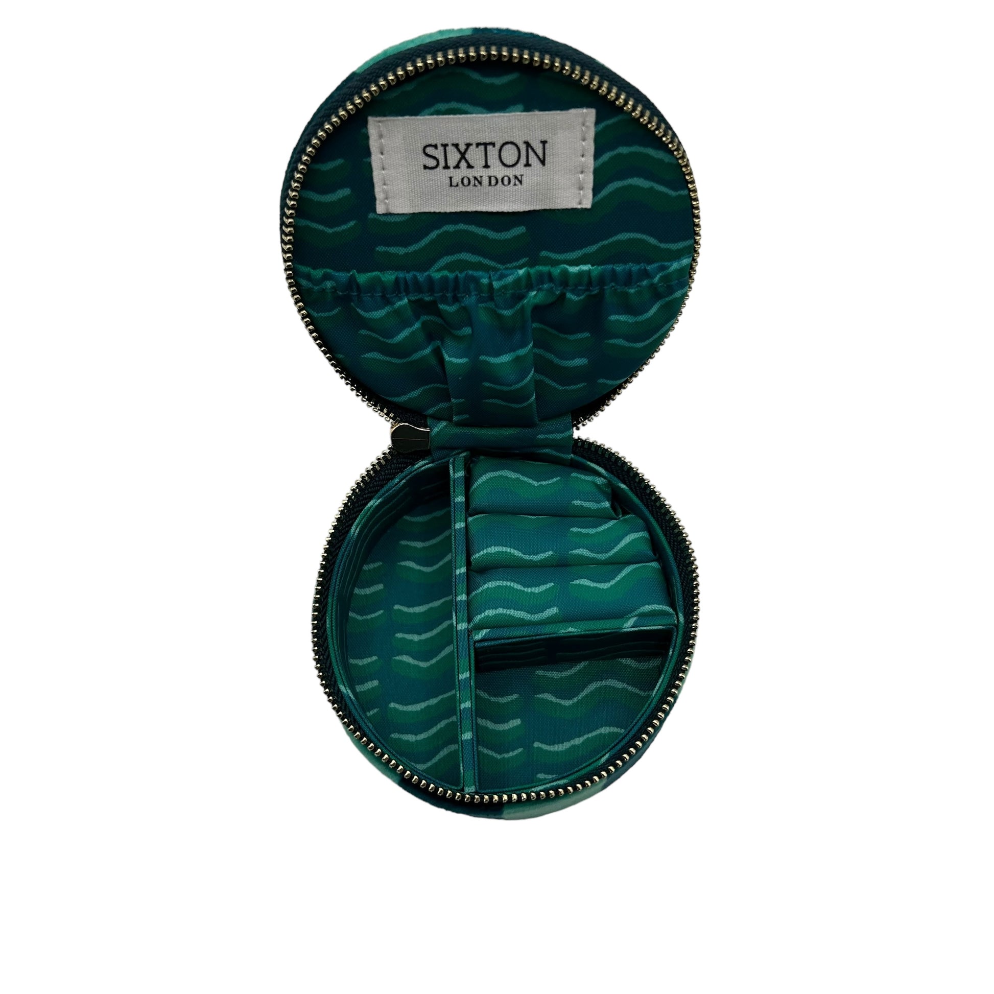 Jewellery Travel Pot in teal stripe - Kitsch Tree brooch