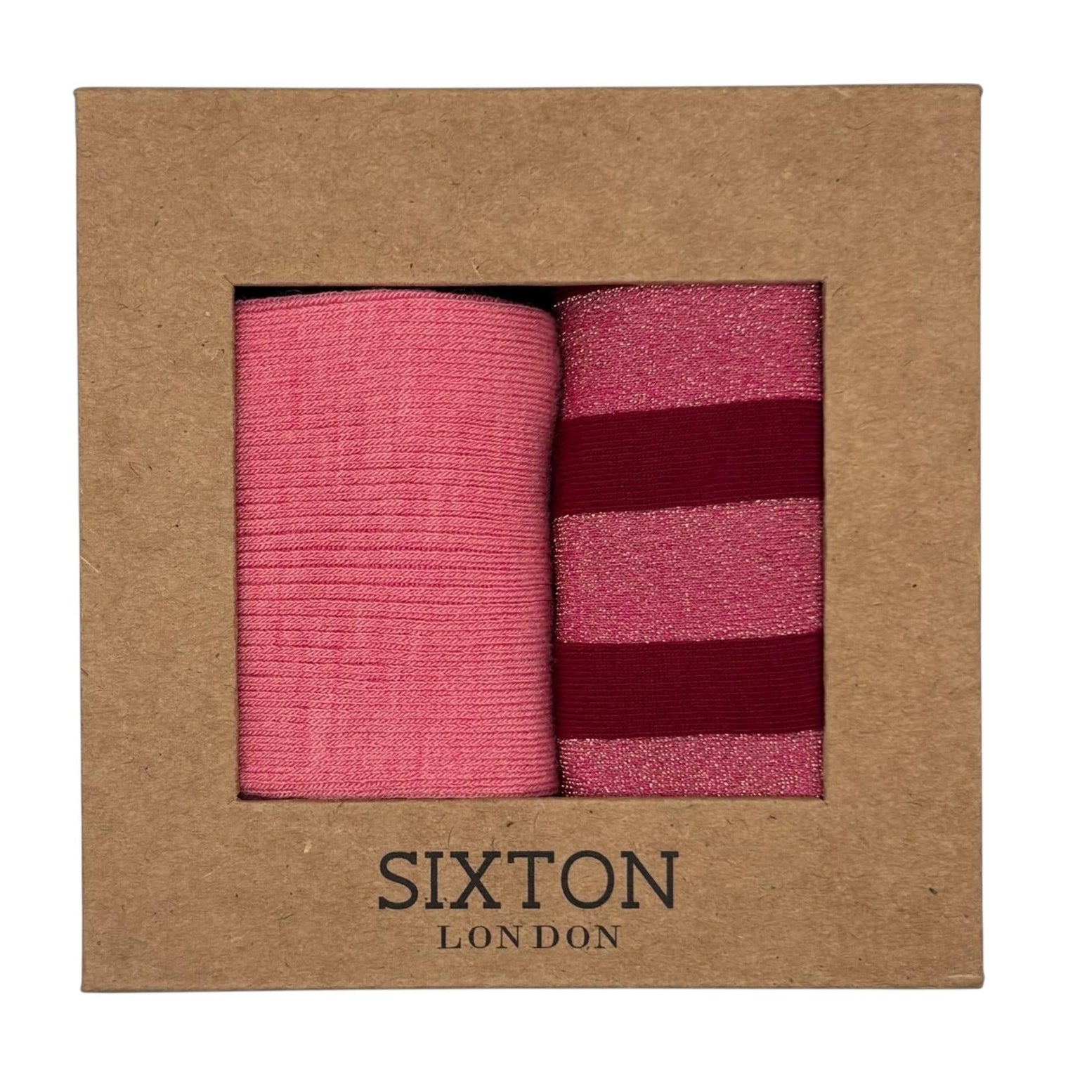 Two pairs of socks in a gift box - pink Barcelona & red Berlin.