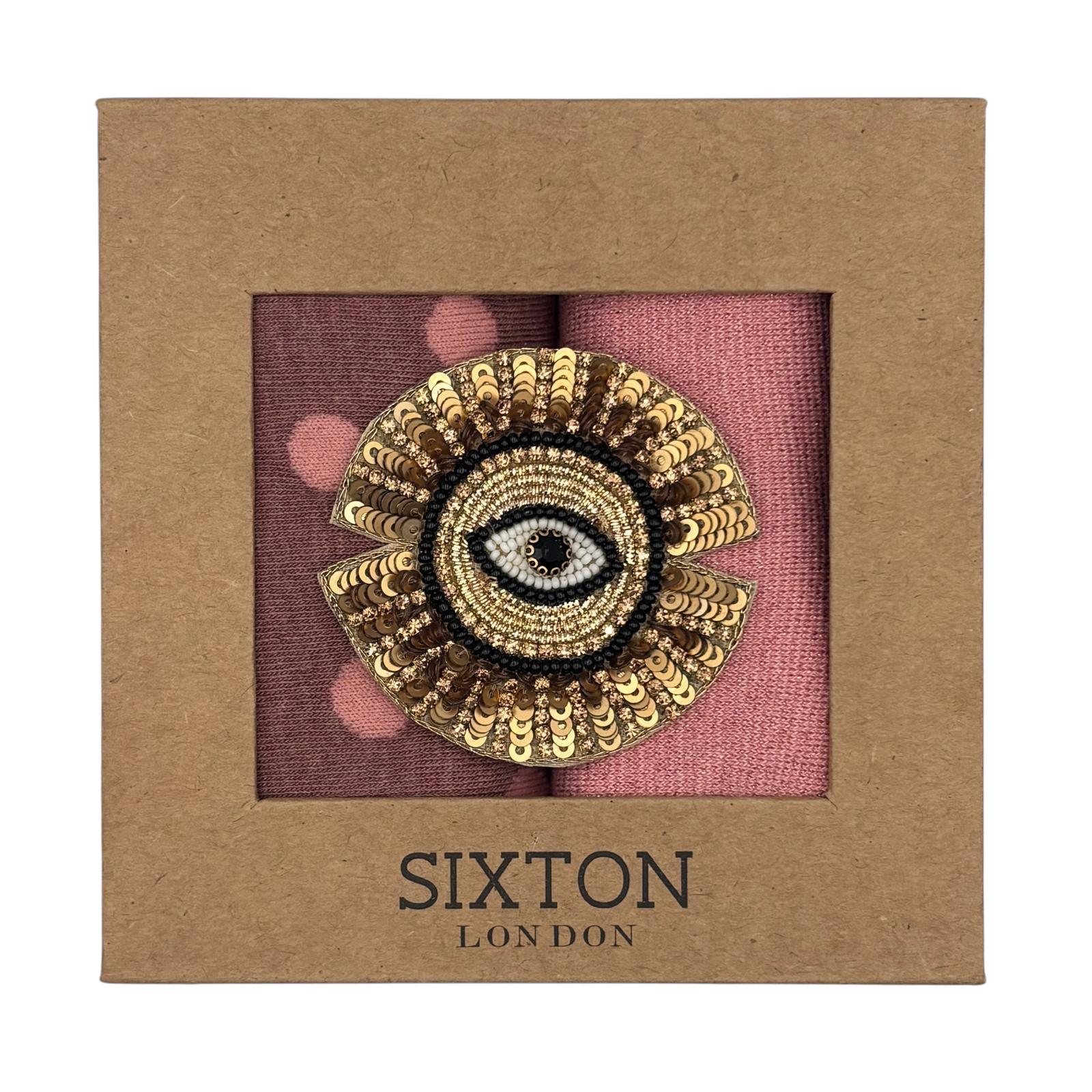 Pink Porto & Pale Pink Tokyo sock box duo with embroidered brooch