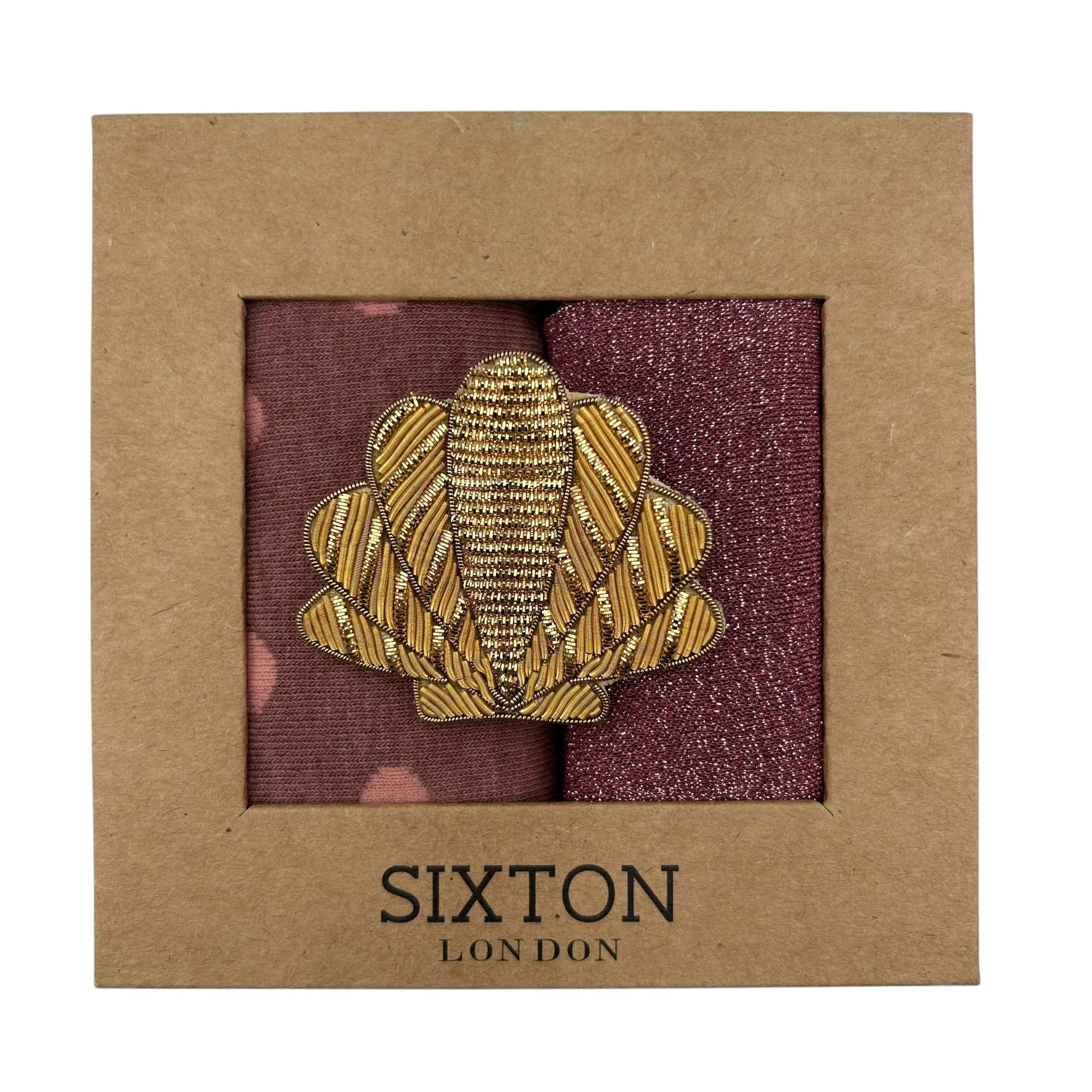 Pink Porto & Rio sock box duo with an embroidered brooch