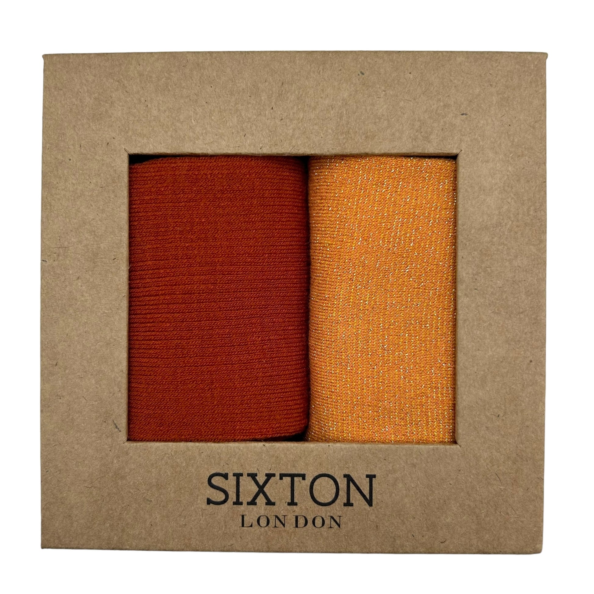 Two pairs of socks - rust merino wool mix Barcelona and cantaloupe Tokyo socks.