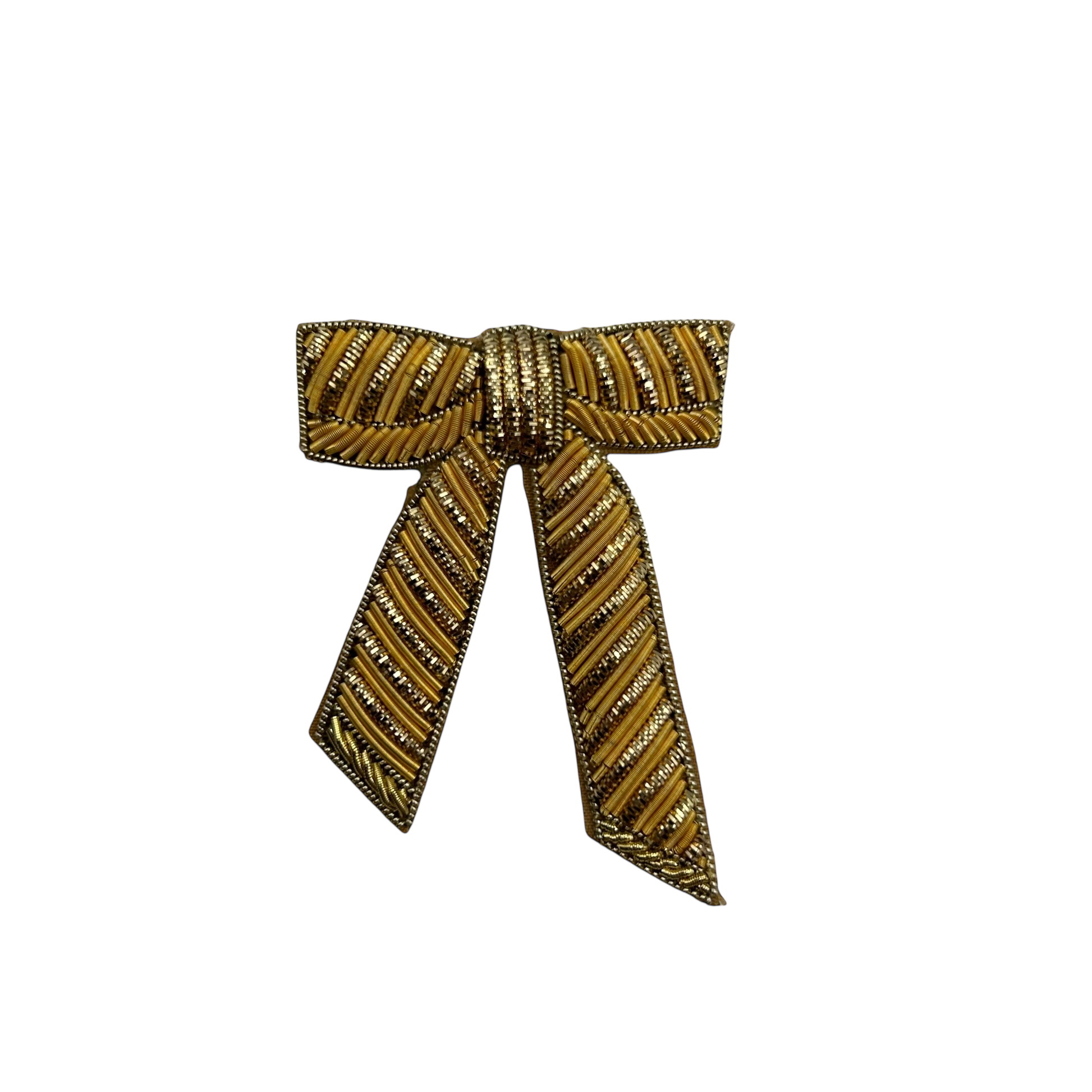 A gorgeous yellow and cream stripe velvet makeup bag, with a detachable Bow brooch.