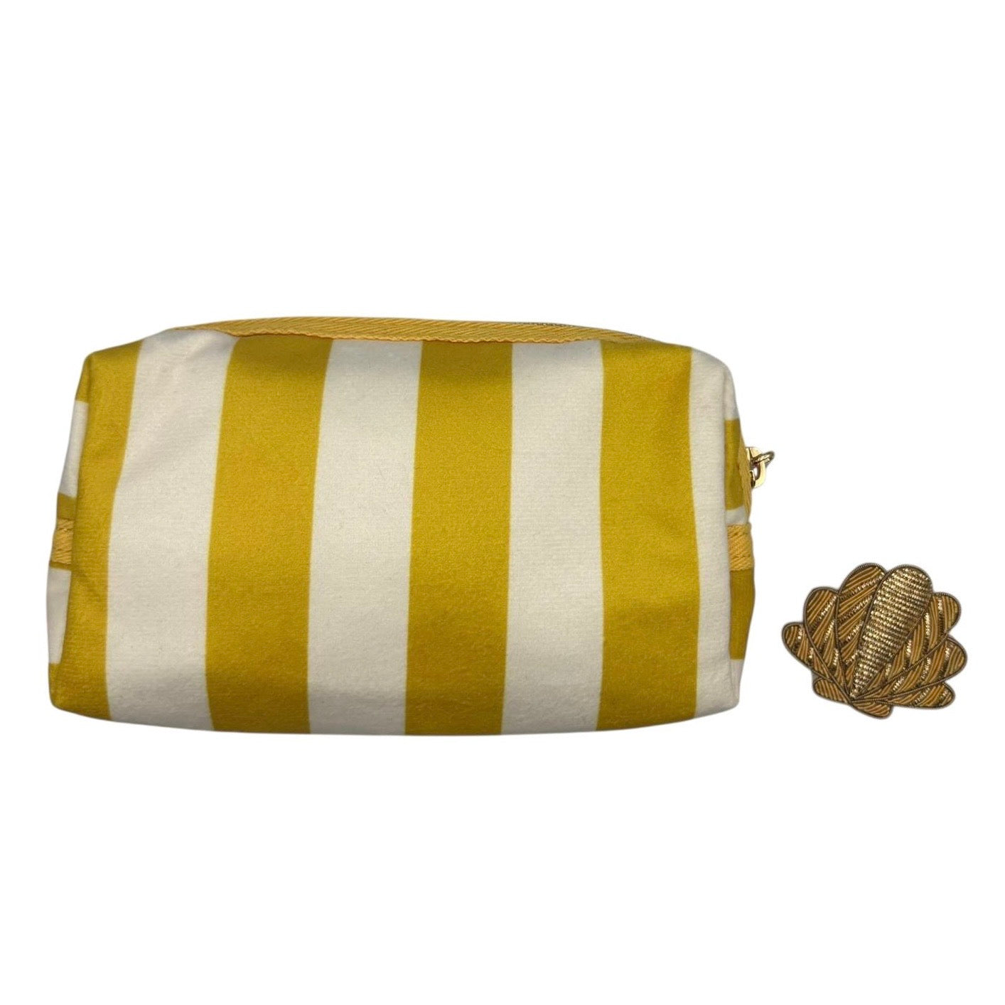 Yellow stripe makeup bag with Shell pin