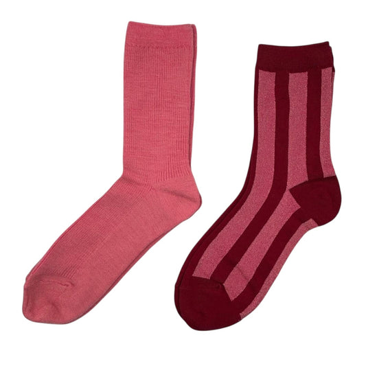Pink Barcelona & Red Berlin sock box duo with embroidered brooch