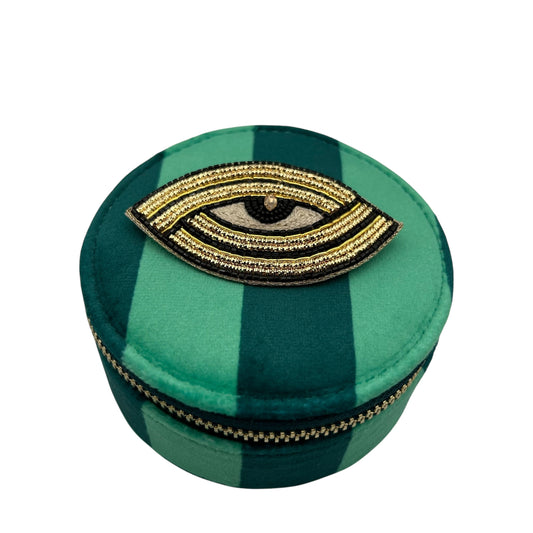 Jewellery Travel Pot in teal stripe - Linear Eye brooch