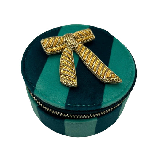 Jewellery Travel Pot in teal stripe - Bow brooch