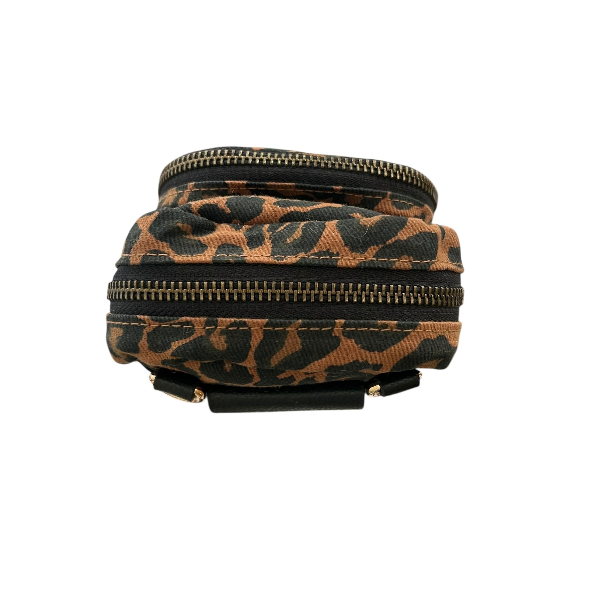 A compact bag for your essentials - in brown leopard print. To be worn over the shoulder or across your body. This bag also has a detachable strap and can be attached to your belt.