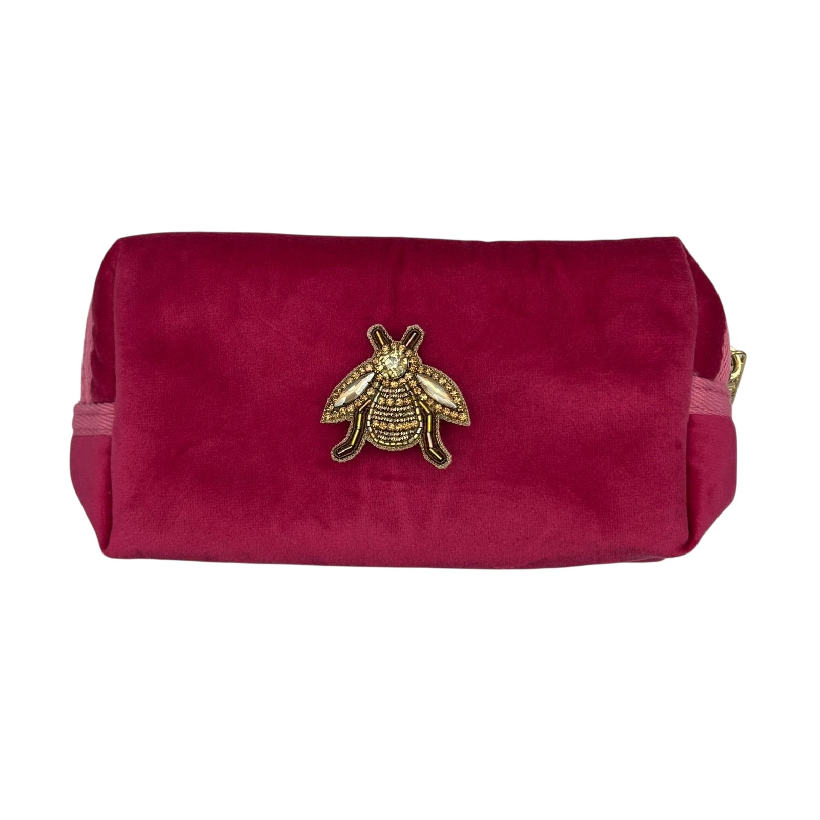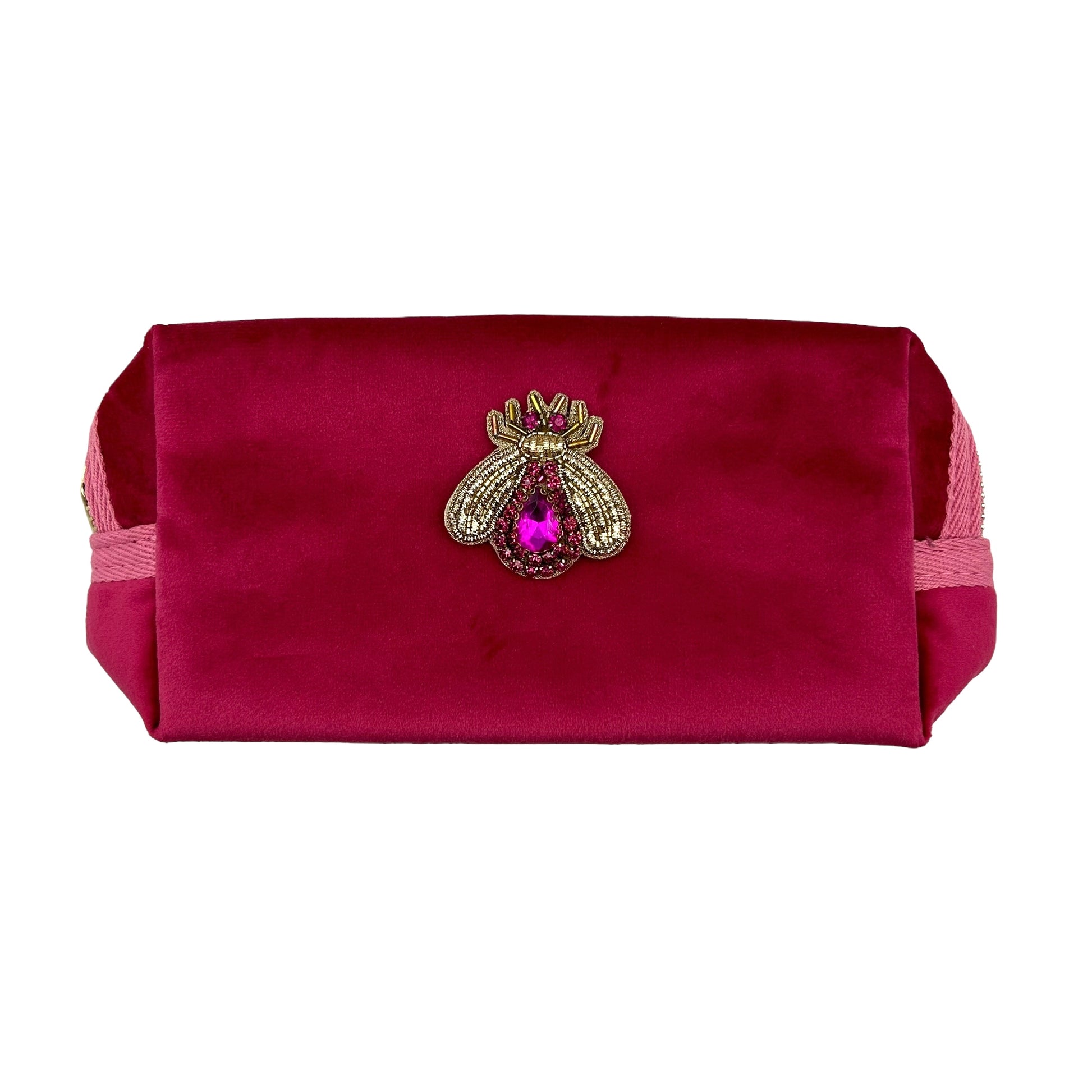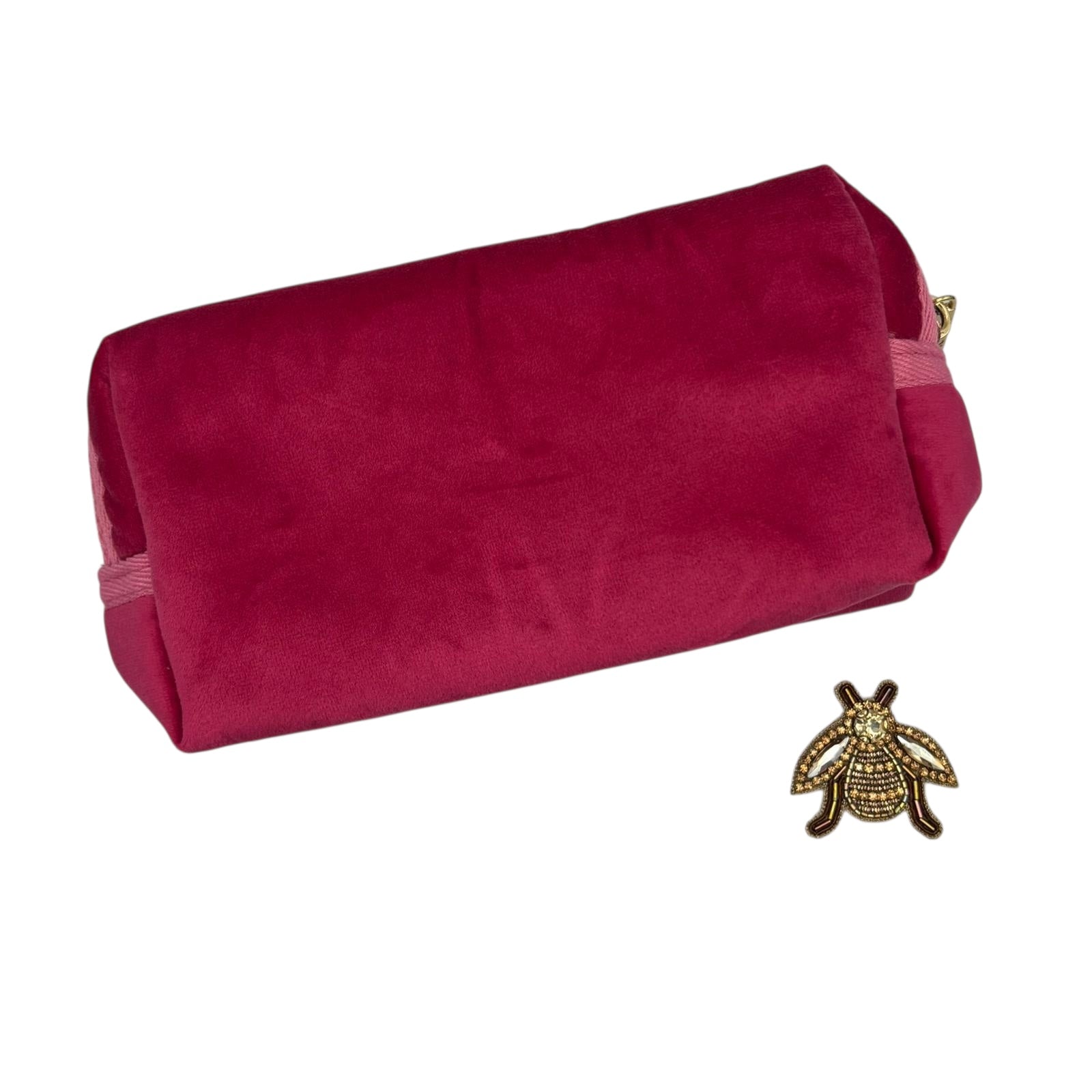 A gorgeous bright pink velvet makeup bag, with a detachable Jewelled Insect brooch in either pink or gold.