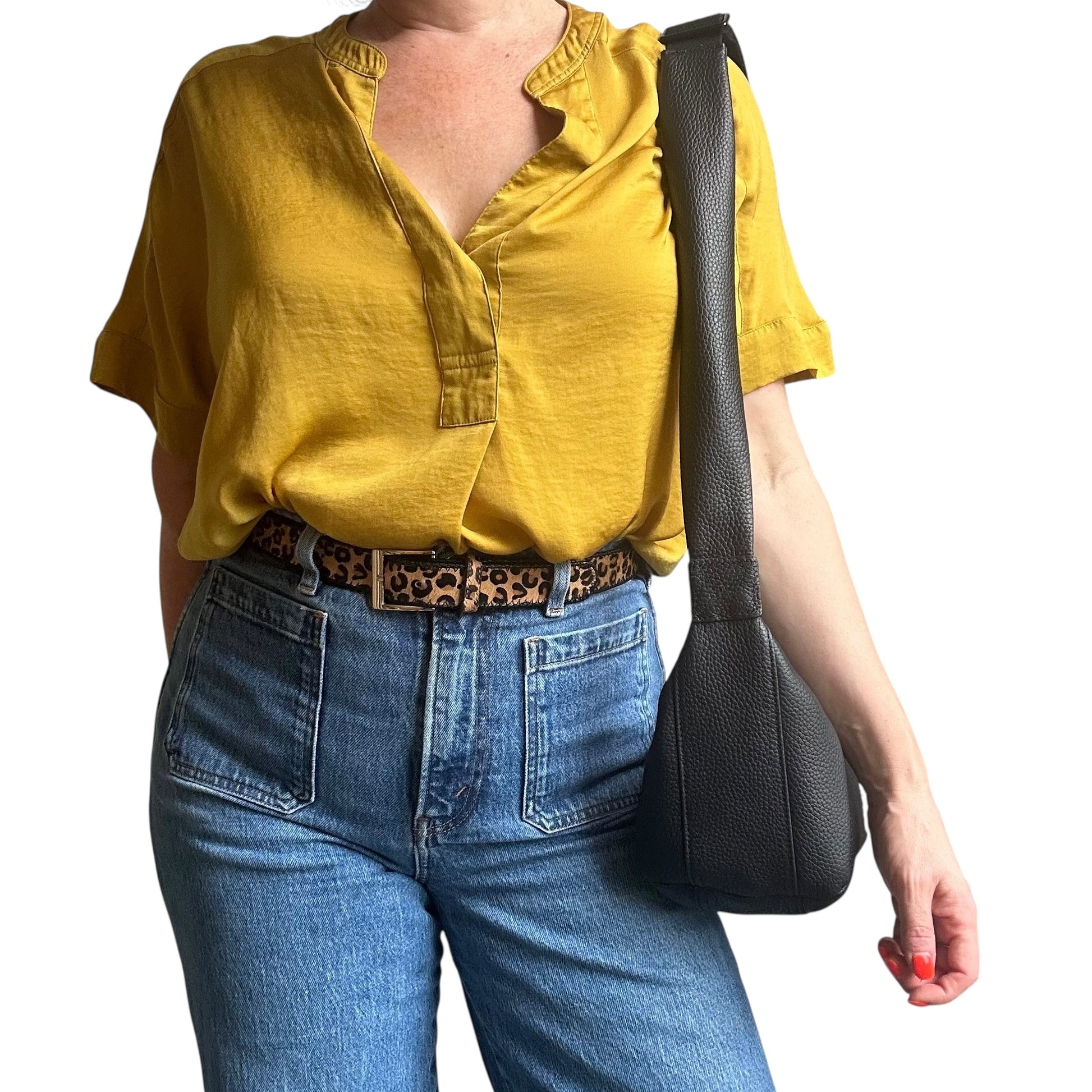 The Brixton bag in a beautiful, black textured leather. The interior features a zipped pocket.