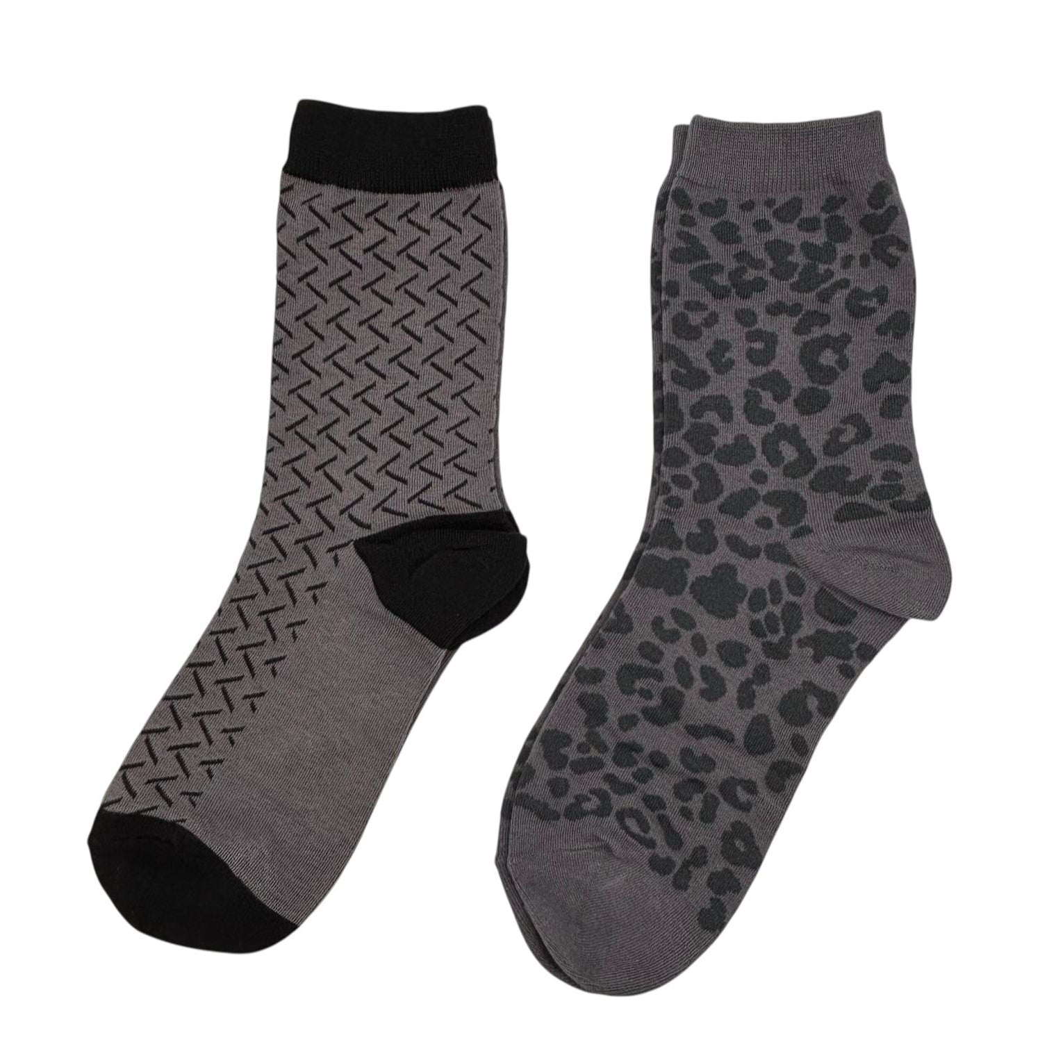 Charcoal Kyoto & Leopard sock box duo with embroidered brooch