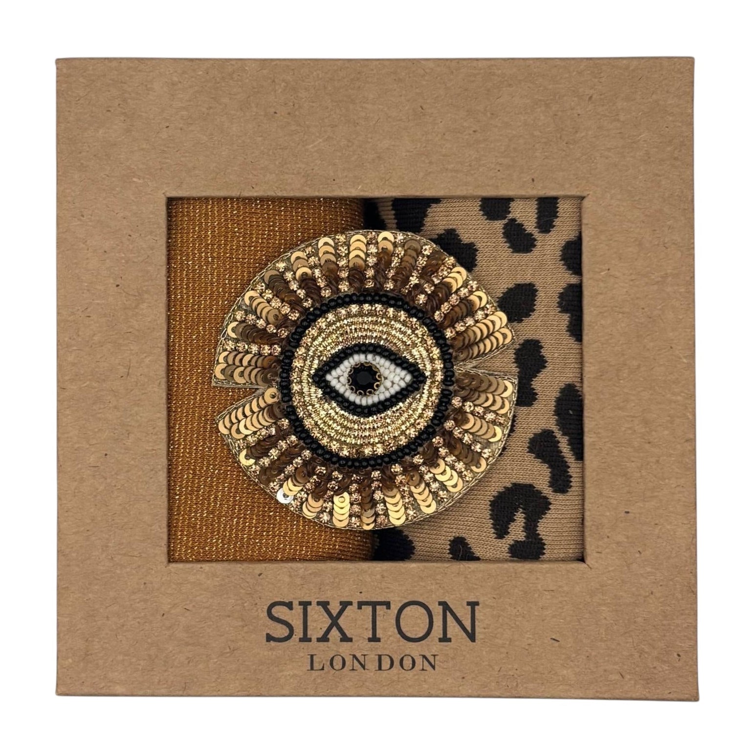 Copper Tokyo & Sand Leopard sock box duo with embroidered brooch