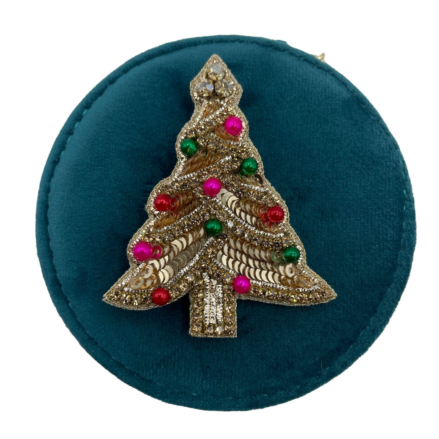 A jewellery travel pot, made from recycled materials, with a detachable Kitsch Tree brooch.