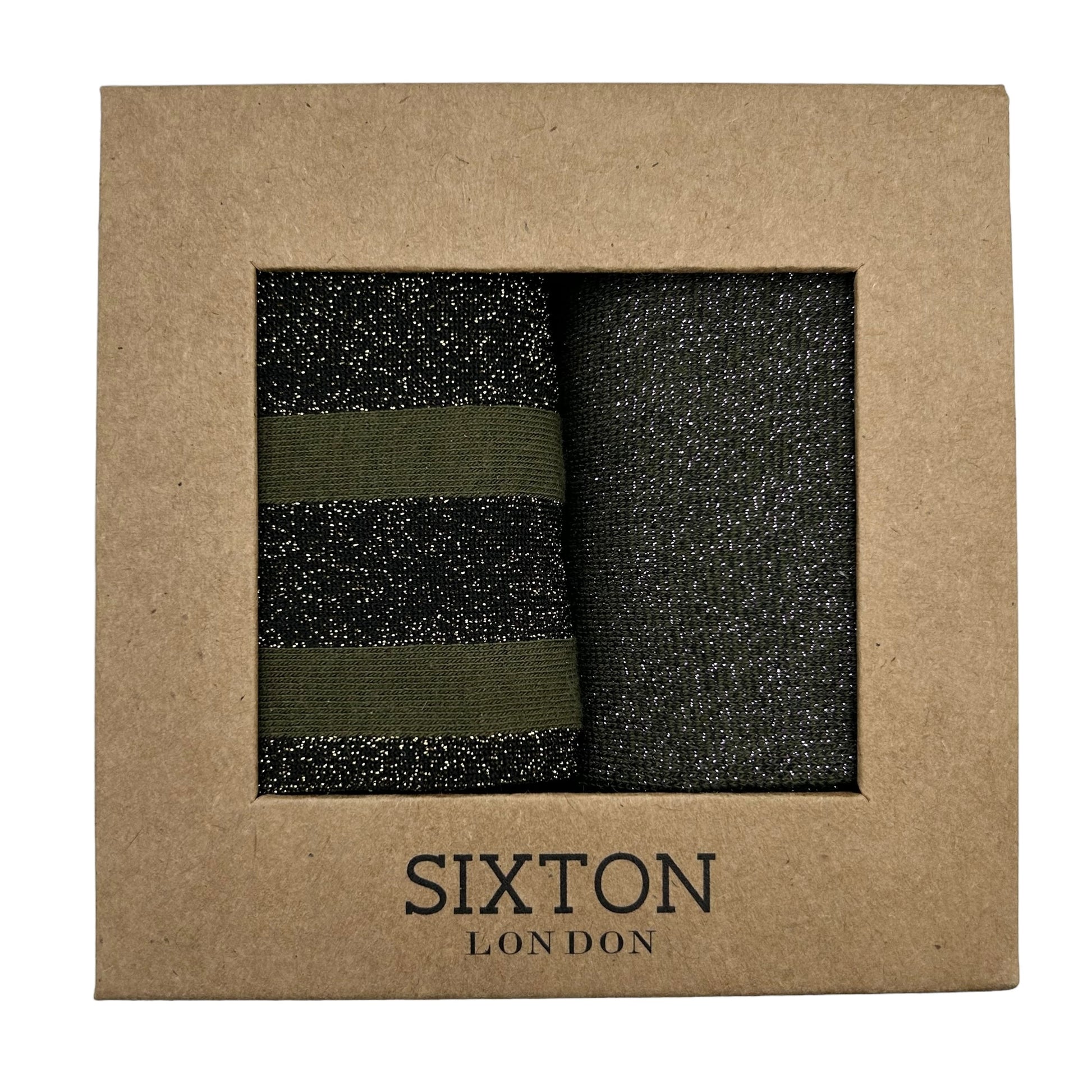 Two pairs of socks - ivy green, Berlin glitter stripe socks and glitter Tokyo.