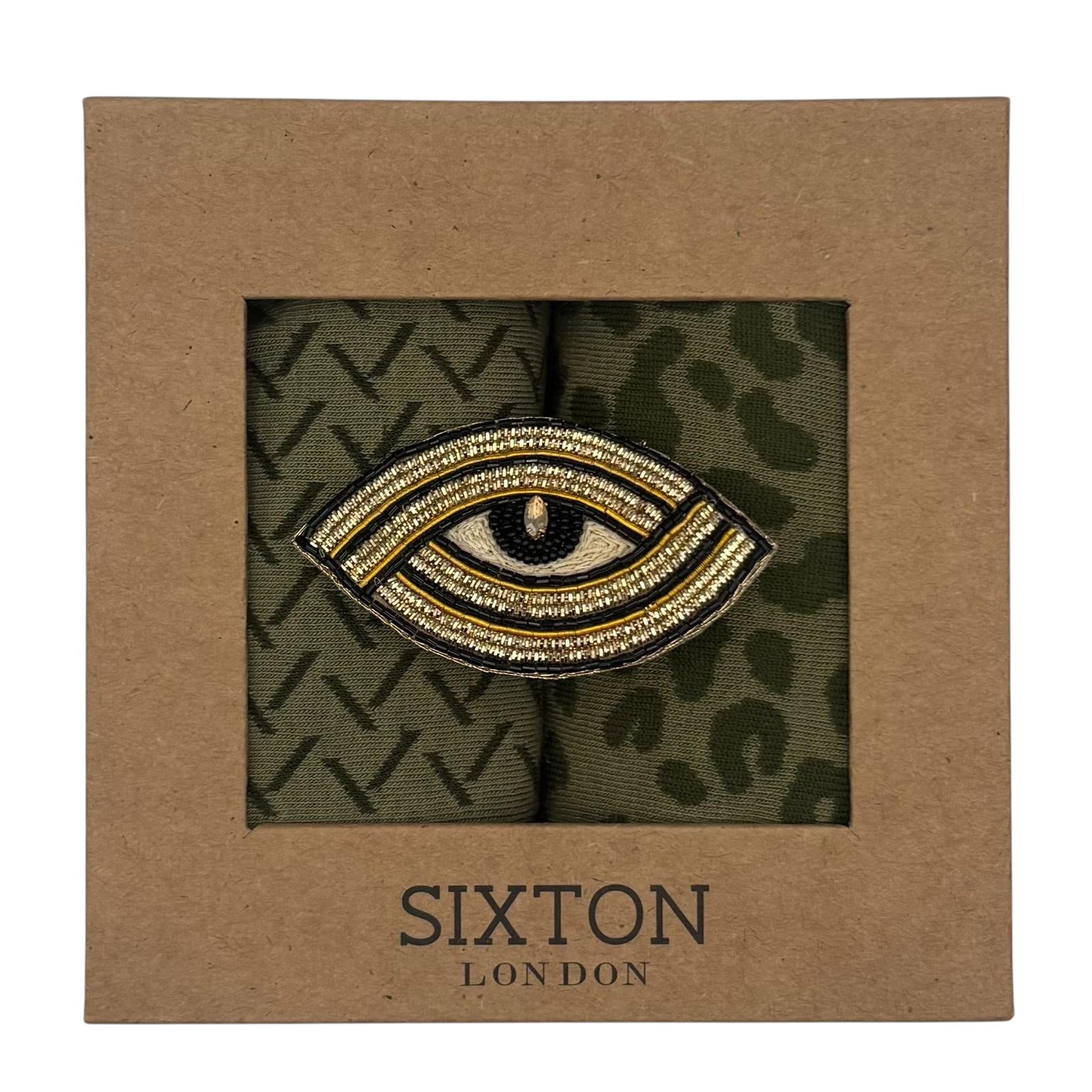 Ivy Kyoto & Leopard sock box duo with embroidered brooch
