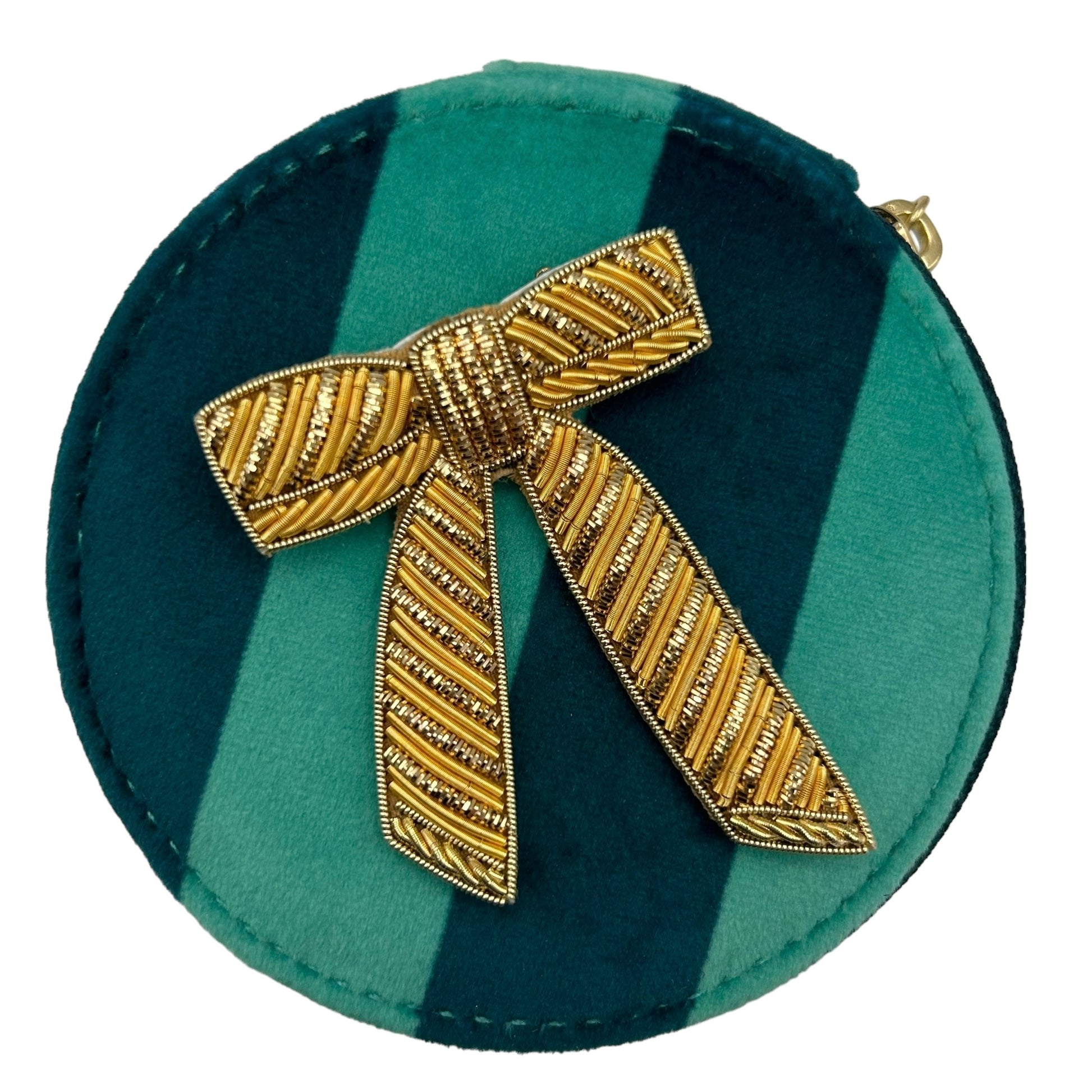 Jewellery Travel Pot in teal stripe - Bow brooch