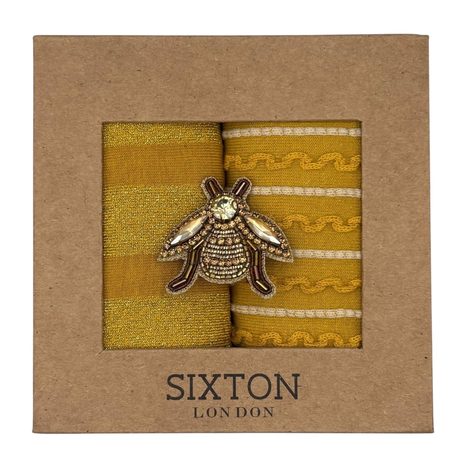 Mustard Berlin & Sunshine Lyon sock box duo with embroidered brooch