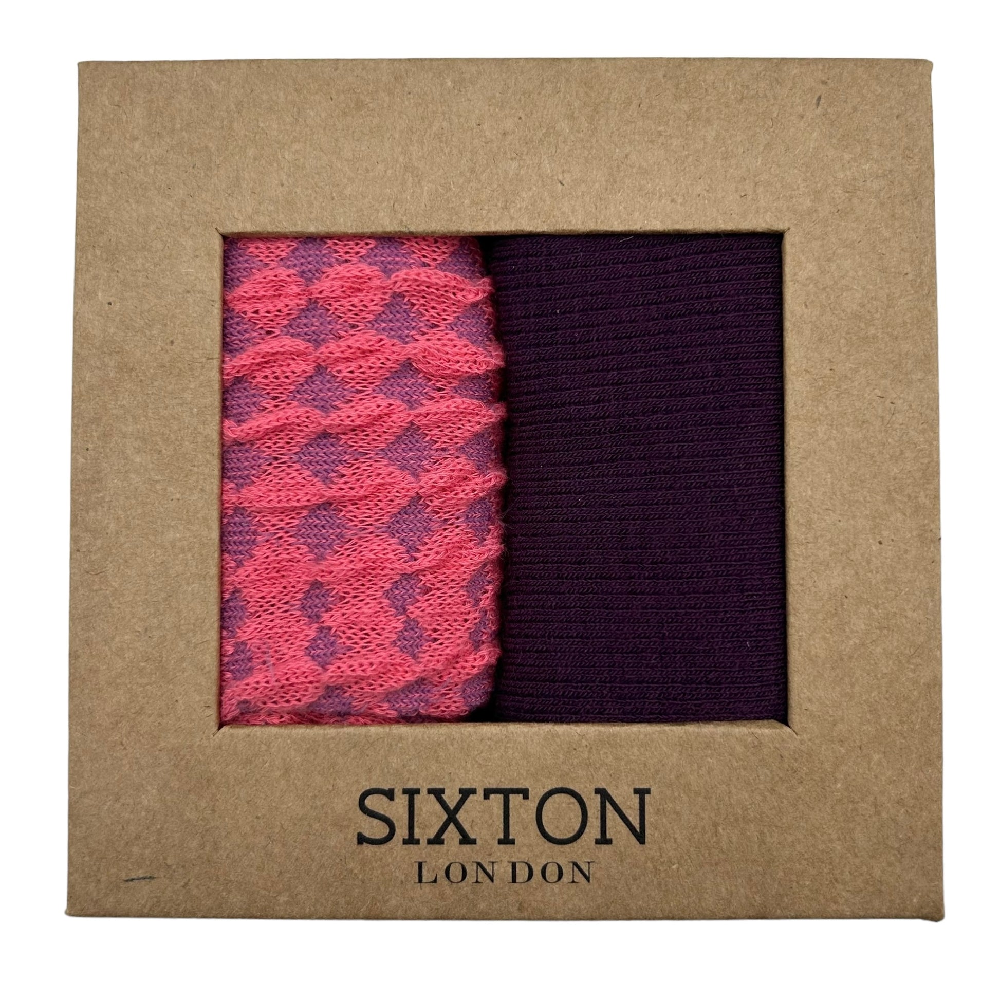 Two pairs of socks - purple merino wool mix Barcelona and textured Estoril in pink.
