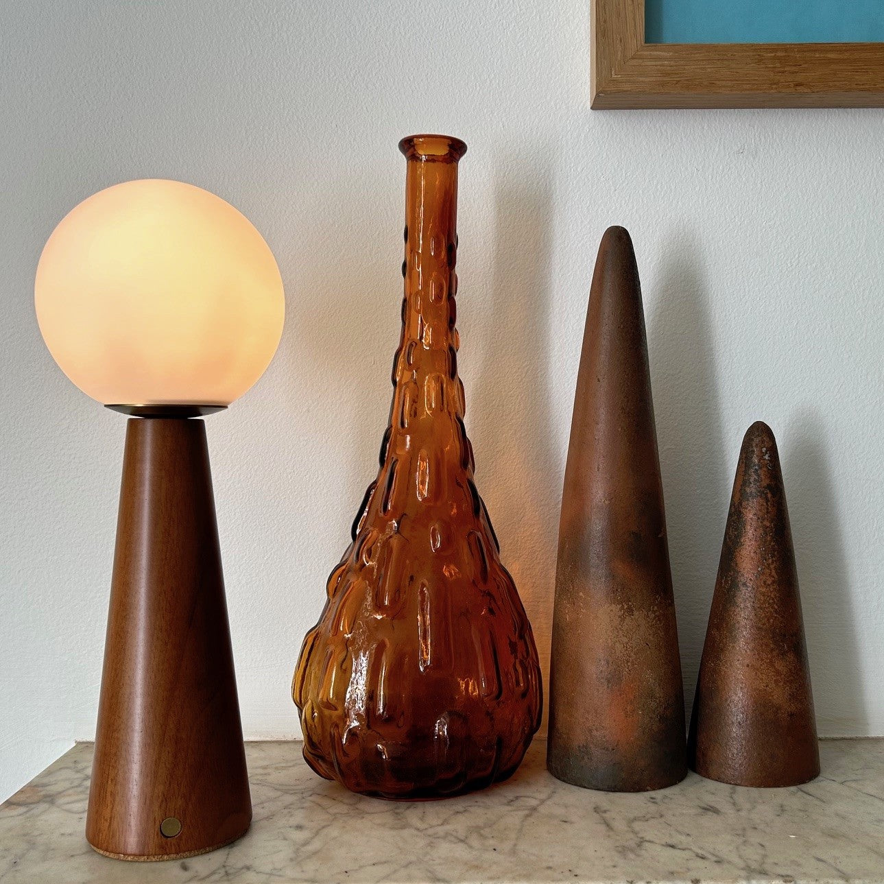 An art deco inspired, stylish cone shaped, accent lamp. This rechargeable lamp takes up to 4 hours to fully charge and it can be moved around the home.