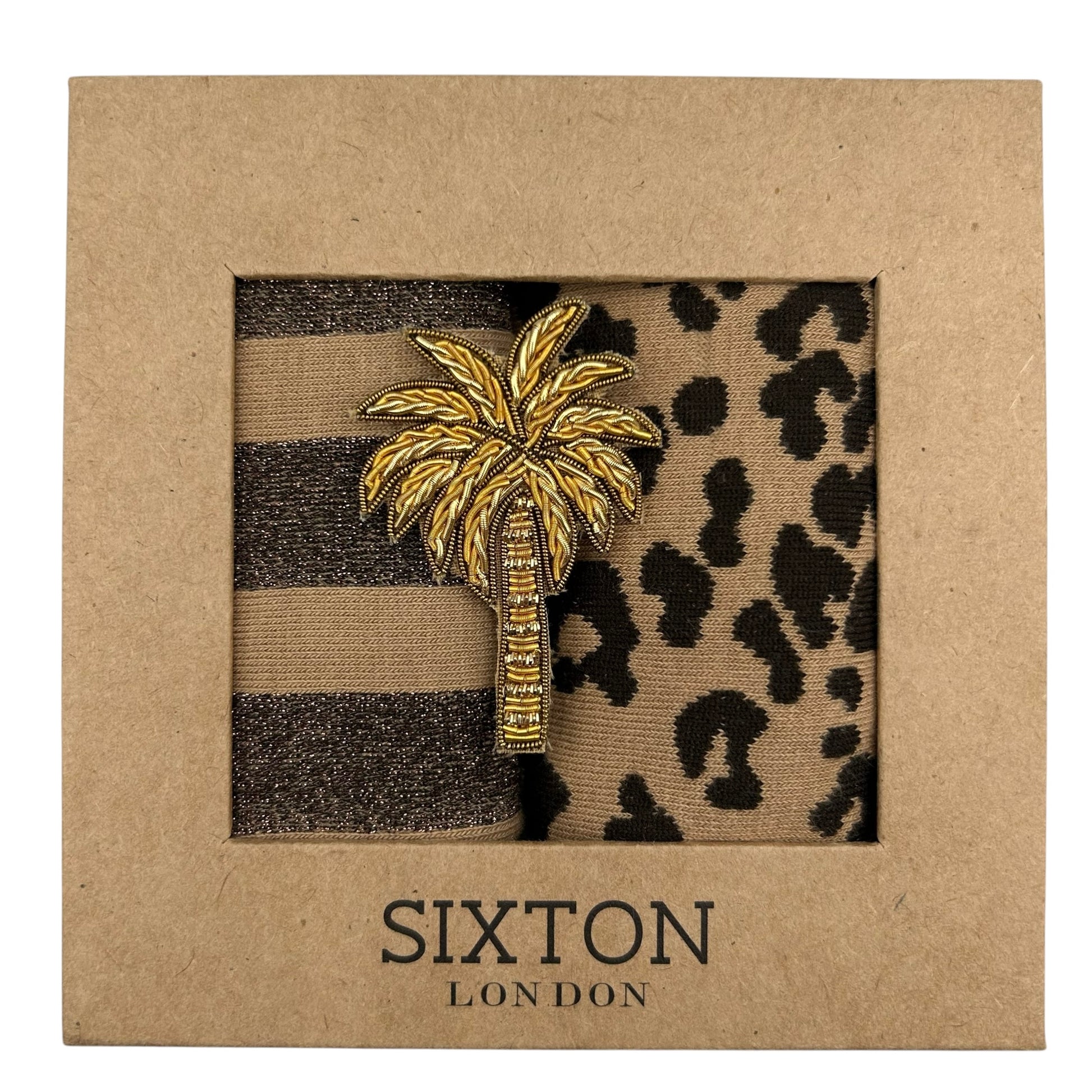 Sand Leopard & Berlin sock box duo with pin